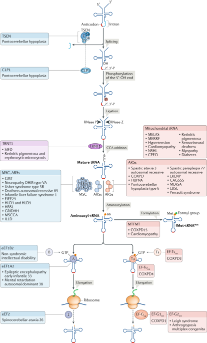 Fig. 1: Defects in tRNAs, aminoacyl-tRNA synthetases and translation elongation factors.