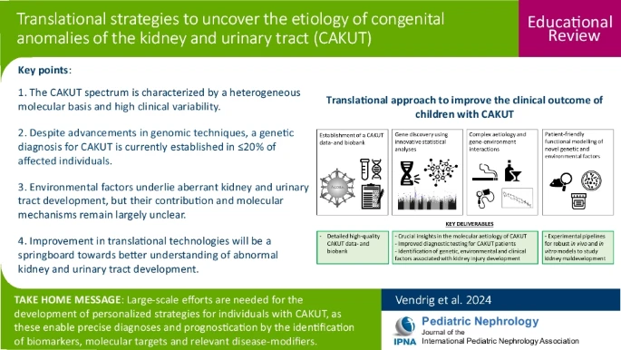 in vivo и in vitro, чтобы понять их роль в аномальном развитии почек и мочевыводящих путей. Для этого мы стремимся использовать методы, удобные для пациентов, создавая органоиды почек из iPSCs, полученных из мочи пациентов. Благодаря нашей стратегии интеграции подробной фенотипической информации о пациентах с генетическими данными и данными о воздействии окружающей среды мы стремимся усовершенствовать методы клинической диагностики и прогностического моделирования для отдельных пациентов. Парадоксально, но для разработки персонализированной стратегии, улучшающей прогноз и клинический исход пациентов с CAKUT, необходимы когорты, состоящие, возможно, из 10 000 человек. Мы понимаем, что для достижения этой цели необходимо сотрудничество на международном уровне. Поэтому мы стремимся внести свой вклад в создание крайне необходимых разнообразных когорт CAKUT, для которых доступны многоугольные данные для раскрытия сложных молекулярных основ CAKUT.